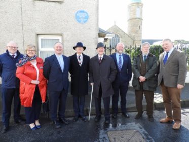 - Ian Williamson, Principal-Ballycastle High School, Lavinia Tilson-Board Director, Ulster- Scots Agency (Blue Plaque Sponsor), Rev. Garry Glasgow, Col. Neill Salisbury, D.L., Very Rev. Dr. Godfrey Brown, Paul Hayes, property convenor-Ballycastle Presbyterian Church, Chris Spurr, Chairman-Ulster History Circle and Derek Reaney, Ulster-Scots Agency